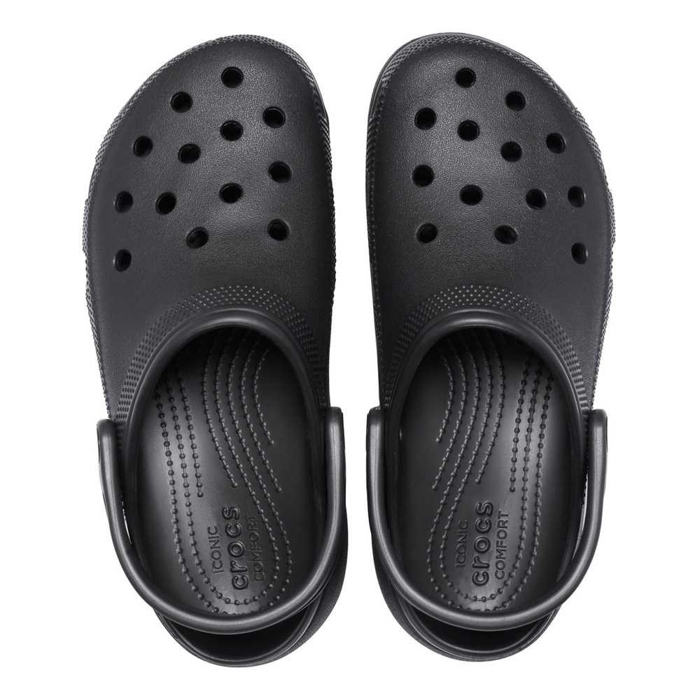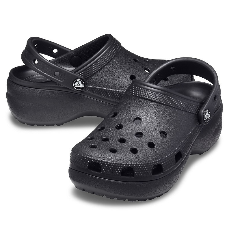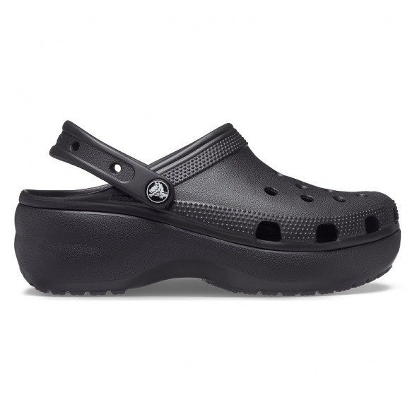 Papucii sunt construiți pe modelul de bază al producătorului, Classic, având o talpă înălțată de 41 mm, păstrând totodată orificiile de ventilație caracteristice, care parcă ”cer” să fie decorate cu accesoriile Jibbitz. Materialul moale și flexibil CrosLite™ oferă greutate redusă și confortul tradițional Crocs, fie acasă, în aer liber sau chiar pe plajă. Branțul ergonomic și susținerea călcâiului dispersează energia generată în timpul mersului, reducând solicitarea articulațiilor. Pe talpa interioară, micii noduli dispuși circular stimulează circulația sângelui, iar bolta transversală susținută ajută la menținerea unei poziții corecte a piciorului. Chinga rabatabilă din spate fixează sigur piciorul, permițând o deplasare încrezătoare și în aer liber.