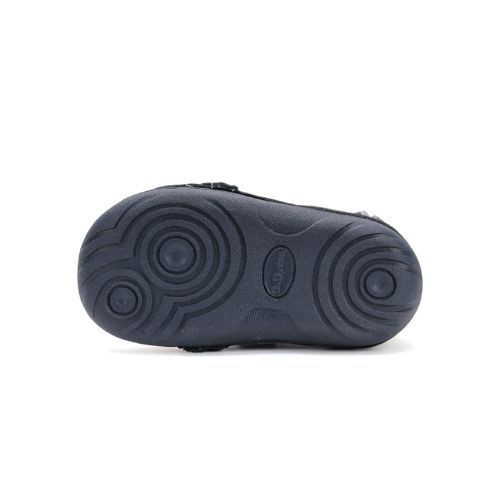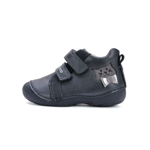 Interior și exterior din piele, pe talpă flexibilă și rezistentă din cauciuc. Partea frontală a tălpii protejează degetele. Ușor de încălțat, cu două benzi velcro.