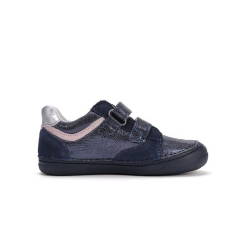 Pantofi pentru copii, exterior și interior din piele, cu talpă flexibilă și durabilă din cauciuc. Partea din față a talpii protejează degetele. Ușor de încălțat, cu două benzi velcro.